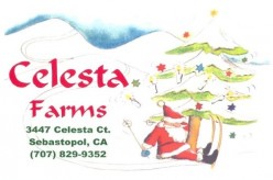 We are open Friday, Saturday, and Sunday 9:00 am to 5:00 pm beginning November 28th through December 21st – while supplies last. Please check our Facebook page for weather updates and to see if we are still open. If you can only come during the week, give us a call (707) 829-9352 or email us at celestafarms@yahoo.com to schedule an appointment to come during the week.